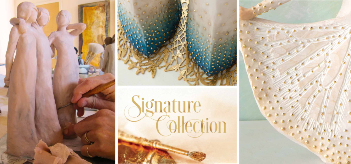 “I embellished the surfaces with gold dots—symbolizing light, or energy, hope, inner strength… gold connotes preciousness and enduring value, and I wanted this to be a special collection.” –Susan Lordi
